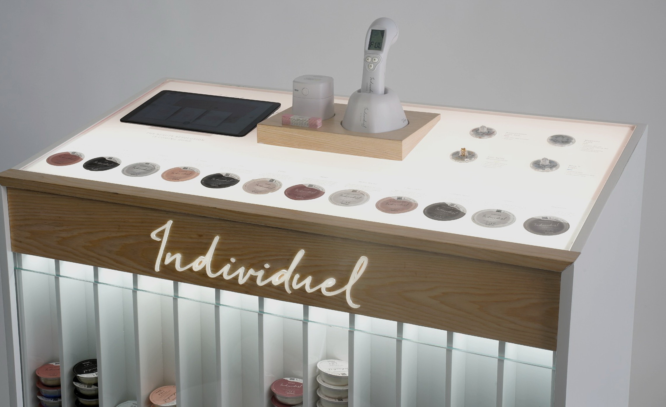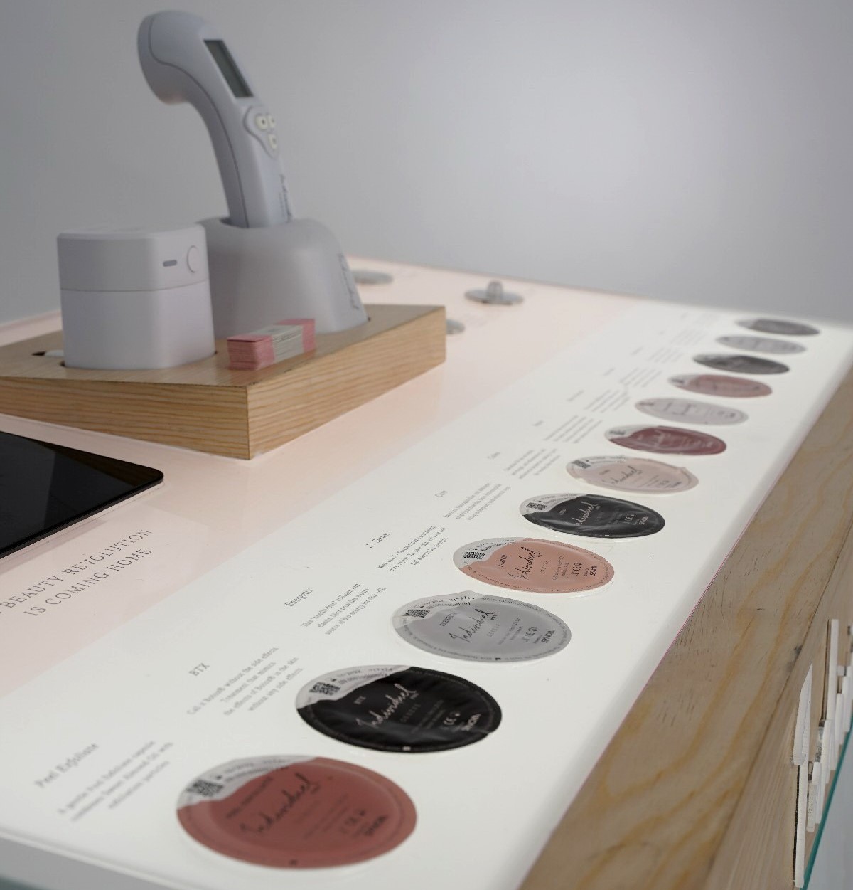 Luxury-designed stand, combination of advanced analyzing system and a tailor made personalized patented capsule treatments with M.I.T technology.